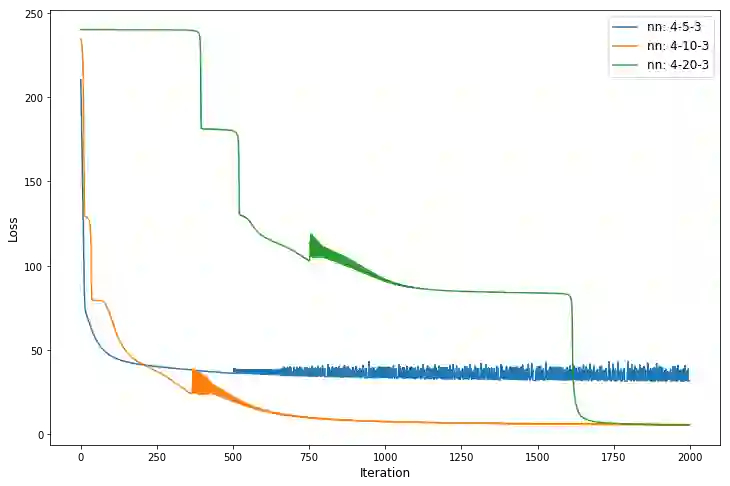 好,让我们创建(之前提到的)三个神经网络架构,并在迭代中绘制损失函数。