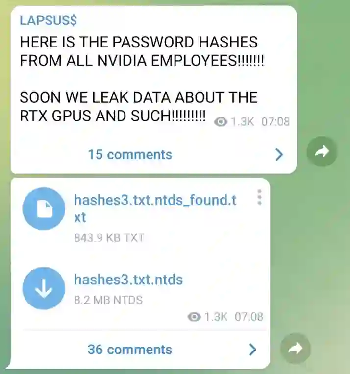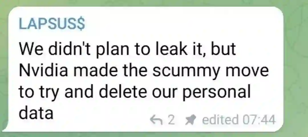 不过Lapsus$同时表示,数据有备份,英伟达并没有达到目的。