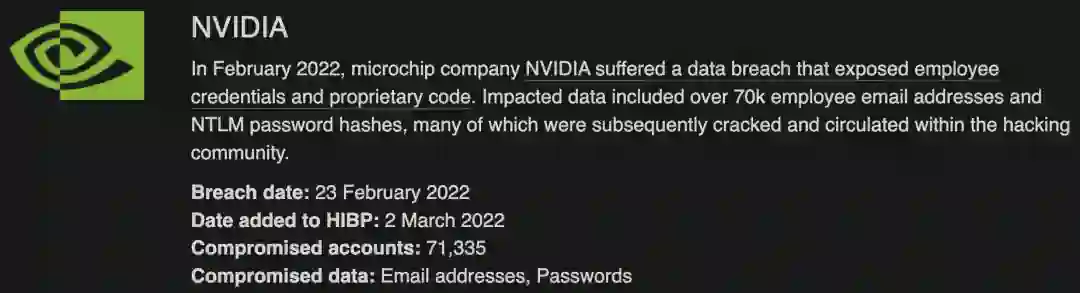 源代码才刚刚「开源」没几天,英伟达71335个员工的电子邮件地址和NTLM密码哈希就被完全泄露了。