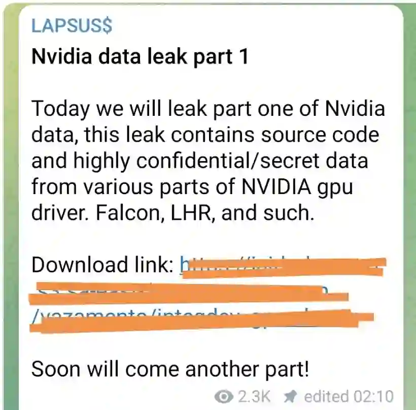 看起来,南美黑客团伙Lapsus$要和英伟达玩一把大的了。