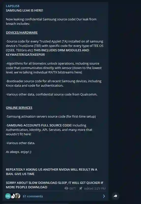 Lapsus$还表示,接下来将部署更多的服务器来提高下载速度。