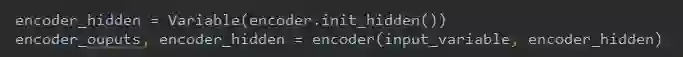 从下往上看,首先是attention根据每个Encoder输出和Decoder的上一次隐层给出每个边的得分,然后和上一次训练的预测值Embedding后cat到一起,和Decoder它的上一个时刻的隐层作为输入进入此刻的GRU,然后输出的时候就跟这个图有点差异了(应该是地方太小,图的主人画不下了吧):这个时候产生的output像我们那样,应该直接把output经过线性层输出分类了;而这个是讲output和刚才的那个attention又cat到了一起再经过线性层映射到目标语言的词典上。(应该是这样会是准确度更高吧,只是猜测。)最后再将线性层softmax下,得到具体的词。就是这么个结果,我们来看下代码吧: