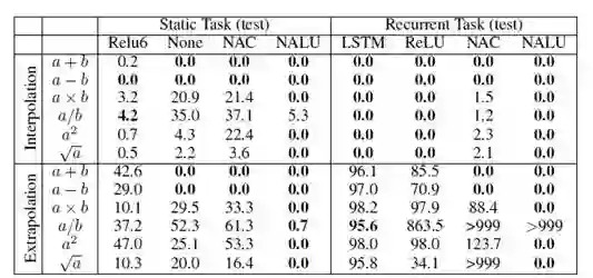 本文,我们提出了两种能够学习以系统的方式去表示和处理数字式信息的模型。第一种模型有支持对积累量进行累加的能力,这是线性外推的理想偏置项。该模型构成了第二个模型的基础,即支持乘法外推。此模型还阐述了如何将任意算术函数的偏置项有效地融合到端到端模型中。