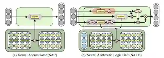 众所周知,神经网络可以学习如何表示和处理数字式信息,但是如果在训练当中遇到超出可接受的数值范围,它归纳信息的能力很难保持在一个较好的水平。为了推广更加系统化的数值外推,我们提出了一种新的架构,它将数字式信息表示为线性激活函数,使用原始算术运算符进行运算,并由学习门控制。我们将此模块称为神经算术逻辑单元(NALU) ,类似于传统处理器中的算术逻辑单元。实验表明,增强的NALU 神经网络可以学习时间追踪,使用算术对数字式图像进行处理,将数字式信息转为实值标量,执行计算机代码以及获取图像中的目标个数。与传统的架构相比,我们在训练过程中不管在数值范围内还是外都可以更好的泛化,并且外推经常能超出训练数值范围的几个数量级之外。