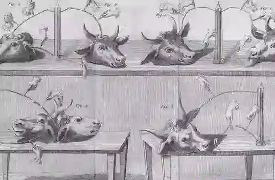 乔凡尼·阿尔蒂尼给牛头通电的实验