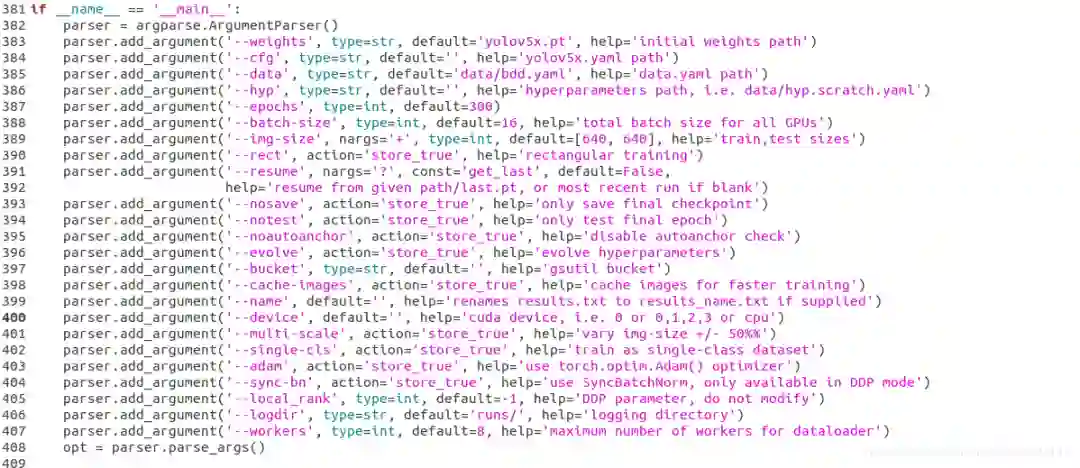 (4)--batch-size 和 --img-size 可以再这里修改也可以默认不动,再训练命令行里设定