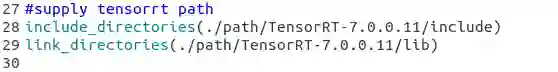 如果tensorrt是通过tar包解压安装的,还需要在CMakeList.txt中对tensorrt路径进行指定,不然会报错找不到nvinfer