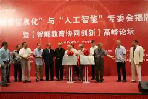 中国国际教育电视台讯:(记者刘瑛)9月24日,“教育信息化”与“人工智能”专委会揭牌仪式暨智能教育协同创新高峰论坛在北京举行。国际信息研究学会中国分会主席钟义信教授、国际信息研究学会中国分会副主席闫学杉、中国工程院院士何新贵、中国人工智能学会何华灿教授等嘉宾出席本次活动。