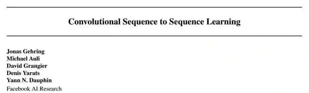 [1] Convolutional Sequence to Sequence Learning. Jonas Gehring, Michael Auli, David Grangier, Denis Yarats, Yann N. Dauphin.(即本论文)