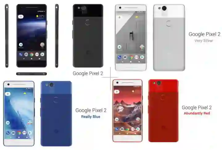 第一代 Pixel 在颜色命名上终于实现了「突破」,分别提供了 Quite Black 稍微黑、Very Silver 非常银,还有就是限量版 Really Blue 超级蓝。根据 PhoneArena 带来了爆料,Pixel 2 代除了提供黑色、银色、蓝色之外,还有一款 Abundantly Red(充足红?) 。其中黑色、红色款都会有前面板为黑色的版本。