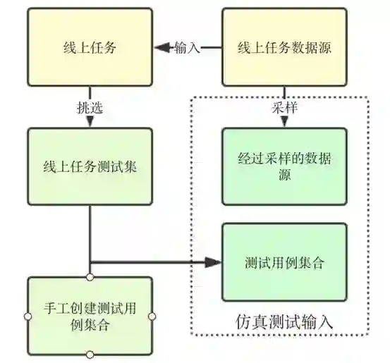 仿真测试的测试数据集是当前线上任务输入数据的采样,仅在数据规模上有差异,并且,可以根据测试需求的不同进行动态地调节,从而实现对测试目标的精确衡量。