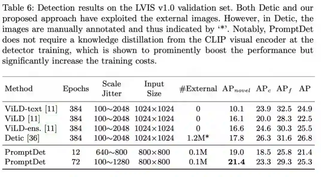 (iii)用于检测器训练的基本类别的多样性明显低于用于训练CLIP的类别多样性,因此,可能不足以保证对新类别的泛化。