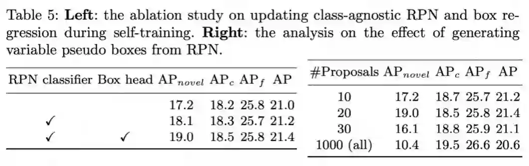RPN和检测头更新以及伪标签生成中候选框数量消融分析:
