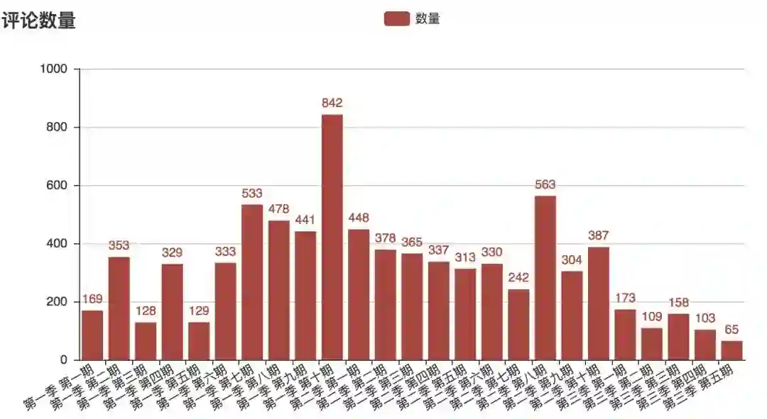 回归正题,我们再来看一下,在每一期的评论数量: