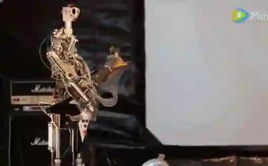 比如这支曾经被马云爸爸邀请参加晚会,给张杰伴奏的机器人乐队——德国的“钢铁重金属天团”Compressorhead。这只乐队由3个身高约1.5米的机器人组成,分别担任吉他手、鼓手和贝斯手,虽然长相都有些怪异,但业务能力没得说。
