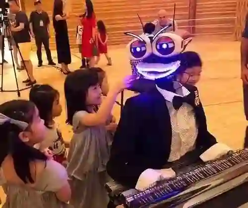 也许是在这位07年的前辈的带领下,近年来的机器人们也越来越多才多艺了,有会演奏乐器的、组成乐队的、甚至还有自学了指挥的。