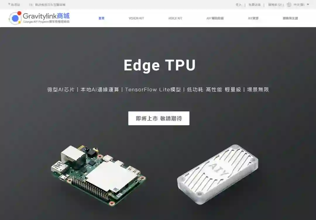 日前宣布成为 Google AIY 系列产品的香港独家授权经销商的 Gravitylink 商城也有宣传 Edge TPU 产品即将上市的消息。