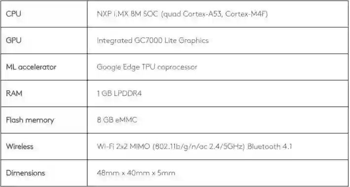 Edge TPU 模块规格