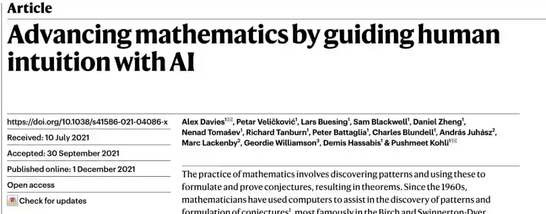 这些让人惊喜的结果,今天发表在著名的科学杂志Nature上,其论文标题为“Advancing mathematics by guiding human intuition with AI”(人类直觉与 AI 推动数学的前进)。