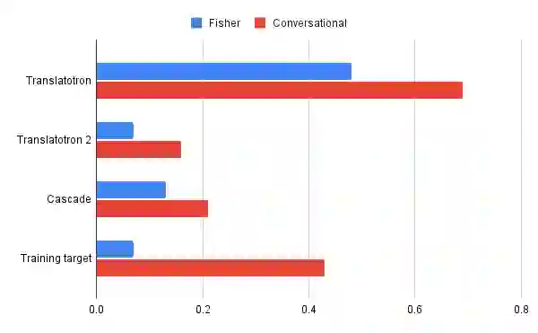 不过,尽管该模型能够生成听起来自然的高保真翻译语音,但与强大的基准级联 S2ST 系统(例如,由语音转文字直接翻译模型[1、2]和 Tacotron 2 TTS 模型组成的系统)相比,其表现仍然欠佳。
