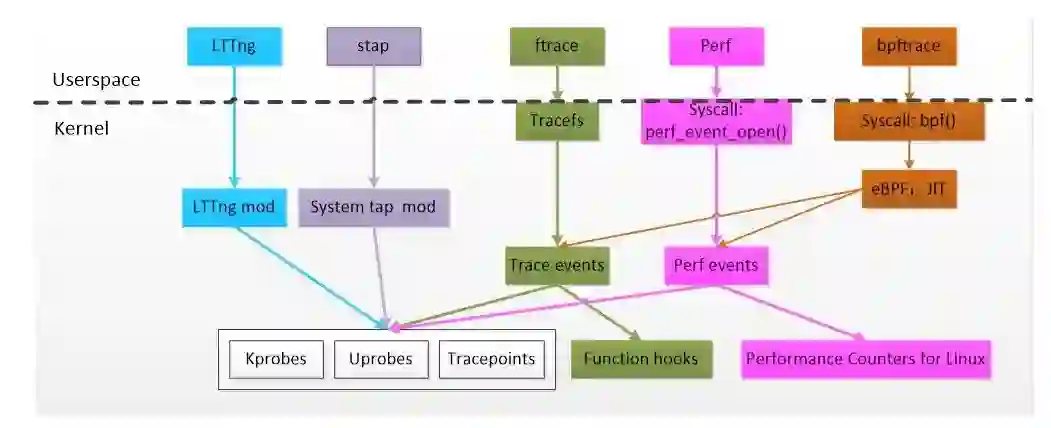 在 eBPF 出现之前,Linux 已经存在多种成熟的 trace 机制和相应的上层工具: