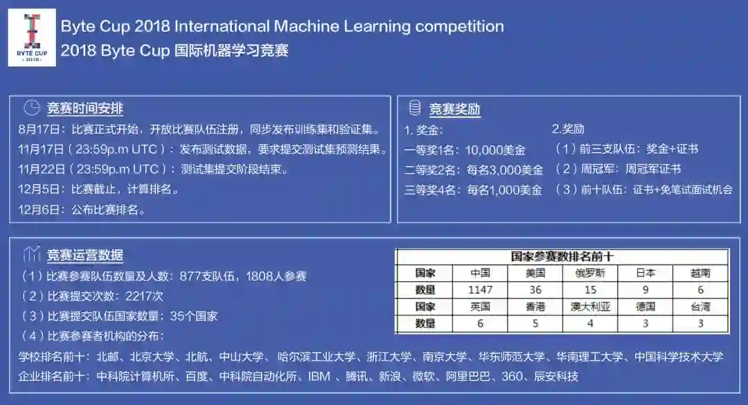 2018 Byte Cup国际机器学习竞赛是一项面向全球的机器学习竞赛,旨在促进机器学习的学术研究和具体应用。Byte Cup 2018的主题是自动生成文本标题。