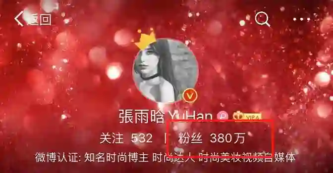 这位大兄弟专门联系上了一家微博头部机构“ 蜂群传媒 ”,并看中了蜂群旗下一名有 380 万粉丝的时尚博主“张雨晗 YuHan”。