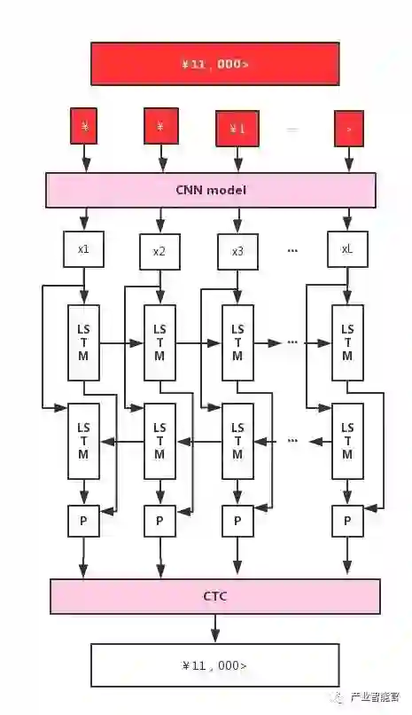 如图所示,通过CNN model获得图片的特征与基于大规模语料数据训练循环神经网络(LSTM)的通用语言模型相结合,再通过基于时序分类(CTC)输出。端到端的文本检测与识别算法克服了传统OCR鲁棒性不足的问题,即使对于京东网站上各种压缩失真和版面复杂的图片,也能有很好的文字识别效果。
