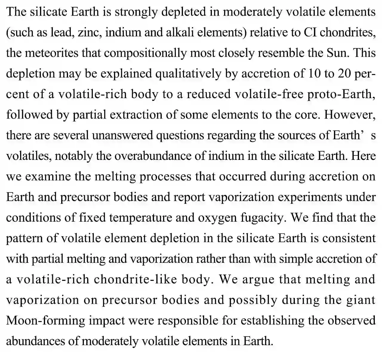 【Geoscience-地球科学】Earth’s volatile contents established by melting and vaporization