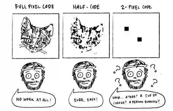他们不需要编码像素,而是需要一个更智能、更“信息密集”的代码。一种能捕捉更多抽象概念的代码,比如什么动物,什么姿势,什么摄像机角度等等。这是数据压缩的基础。我们越想压缩一个数据,我们需要设计的代码就越高效(而且我们冒的风险越高,它就越不会完全被重建)。诀窍是将复杂的信息分解为一些简单的、普遍的概念,但仍然允许相当忠实的重构。