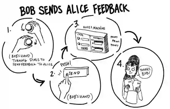 不仅仅是提供一个分数来告诉Bob他有多好(或坏),Charlie还告诉他他的哪个决定有助于这一点,以及如何做出贡献。在技术方面,他为Bob提供了“梯度”。基于这些信息,Bob可以调整他的程序,以便下次获得更高的分数。因为Bob知道Alice的代码是如何影响他的进程和最终输出的,他还可以告诉Alice如何提高编码。为了在这个特殊的案例中获得更高的分数,他希望得到什么样的代码。例如,他可以认为“1号应该更小,2号应该是4.956”。