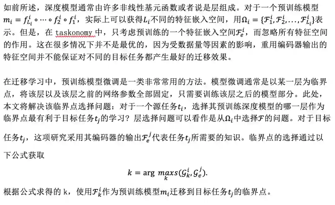 第二个限制是,它采用迁移学习来建立任务之间的迁移关系,这仍然需要大量的标记数据来训练转移模型。然而,在许多情况下,我们只能获取训练好的模型,并不能够获取到相应的训练数据。最后,taskonomy只考虑不同模型或任务之间的可迁移性,而忽略了不同层之间的可迁移性,不能够用来解决微调模型时临界点的选择问题。