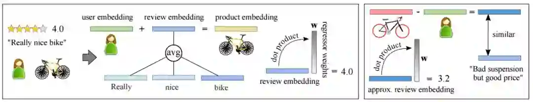 摘要:The text of a review expresses the sentiment a customer has towards a particular product. This is exploited in sentiment analysis where machine learning models are used to predict the review score from the text of the review. Furthermore, the products costumers have purchased in the past are indicative of the products they will purchase in the future. This is what recommender systems exploit by learning models from purchase information to predict the items a customer might be interested in. We propose TransRev, an approach to the product recommendation problem that integrates ideas from recommender systems, sentiment analysis, and multi-relational learning into a joint learning objective. TransRev learns vector representations for users, items, and reviews. The embedding of a review is learned such that (a) it performs well as input feature of a regression model for sentiment prediction; and (b) it always translates the reviewer embedding to the embedding of the reviewed items. This allows TransRev to approximate a review embedding at test time as the difference of the embedding of each item and the user embedding. The approximated review embedding is then used with the regression model to predict the review score for each item. TransRev outperforms state of the art recommender systems on a large number of benchmark data sets. Moreover, it is able to retrieve, for each user and item, the review text from the training set whose embedding is most similar to the approximated review embedding.