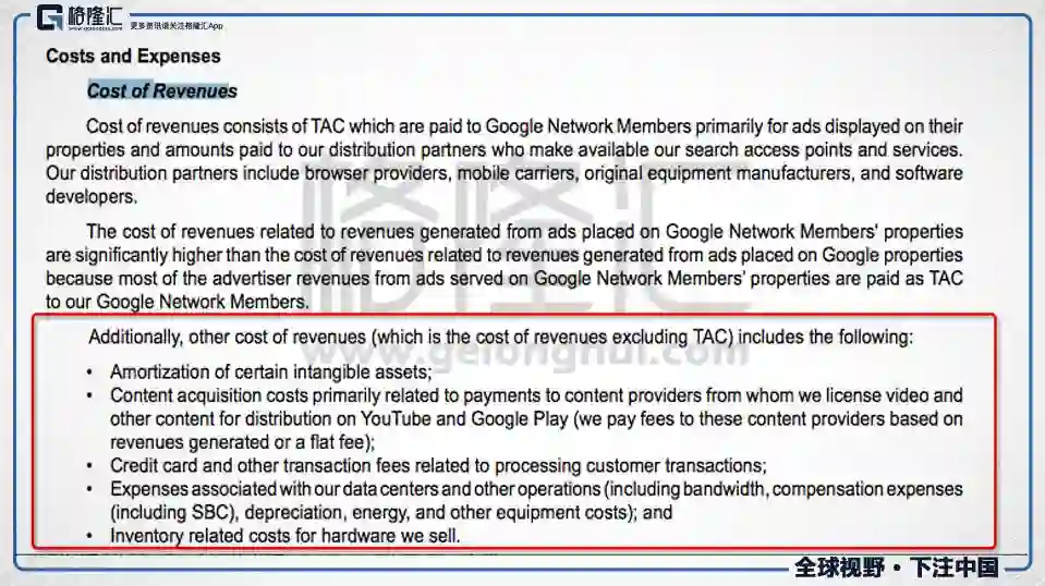 谷歌的other cost of revenue主要包括以下几个东西: