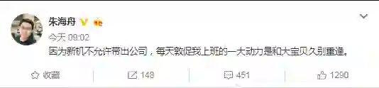 8月12日,锤子科技产品经理朱海舟突然在其个人微博透露了锤子新机的最新进展,令人猝不及防。朱海舟表示新机已经出来了,因为保密或是其它原因存放在公司当中,目前不允许带出公司,他表示“每天敦促我上班的一大动力是和大宝贝久别重逢”。