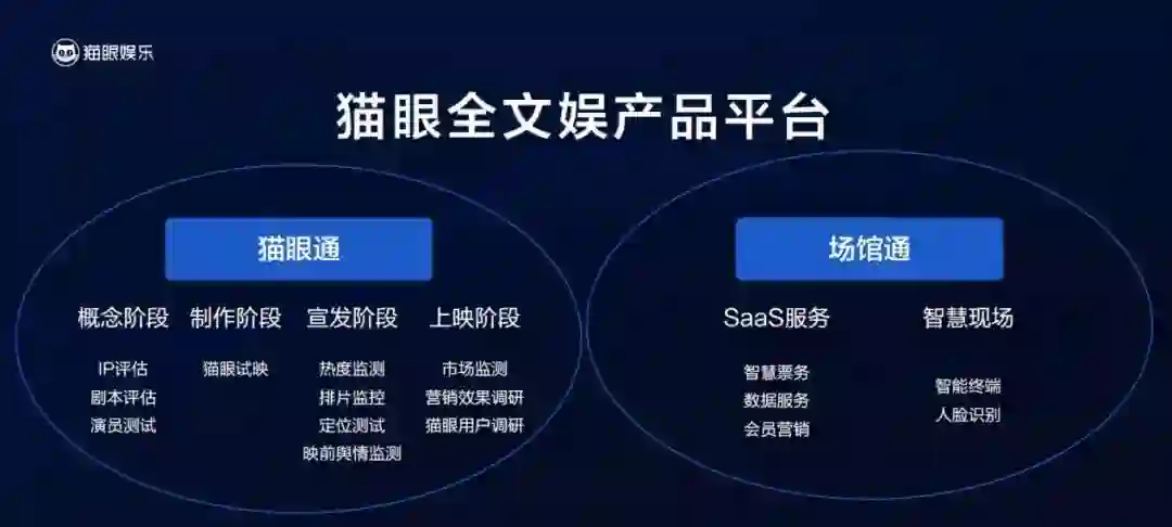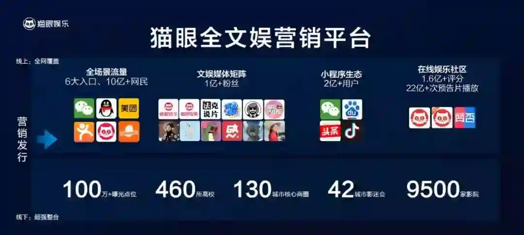 由此可见,「一站式」的概念并非只局限于用户端,在面向供应端的娱乐产业时,数据驱动下的猫眼同样能从资金、制作到宣发、营销等多个维度为创作者提供支持,从这一点上来讲,猫眼五大平台战略中的「数据」是「营销」和「资金」的必要前提,后两者则是技术驱动背景的延伸产物。