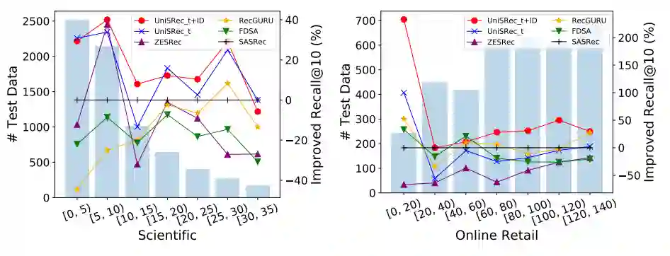 然而大多数针对推荐系统的 SRL 方法都依赖于显示的商品 ID 建模,存在迁移性差和冷启动的问题。即使各个推荐场景的数据格式是完全相同的,这些序列推荐模型依然难以迁移至新的领域或平台,严重限制了推荐模型的重用性。面对一个新的推荐场景,我们往往需要重新训练一个模型,这十分繁琐又耗费资源。此外,对于那些在数据中仅仅存在几次交互历史的冷启动商品,由于训练数据较少,现有的基于商品 ID 建模的模型也难以被很好地推荐给合适的用户。