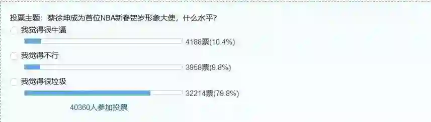 虎扑社区关于蔡徐坤成为首位NBA新春贺岁形象大使的投票