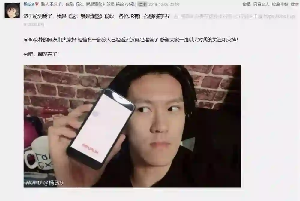 《这!就是灌篮》选手杨政与虎扑网友互动截图