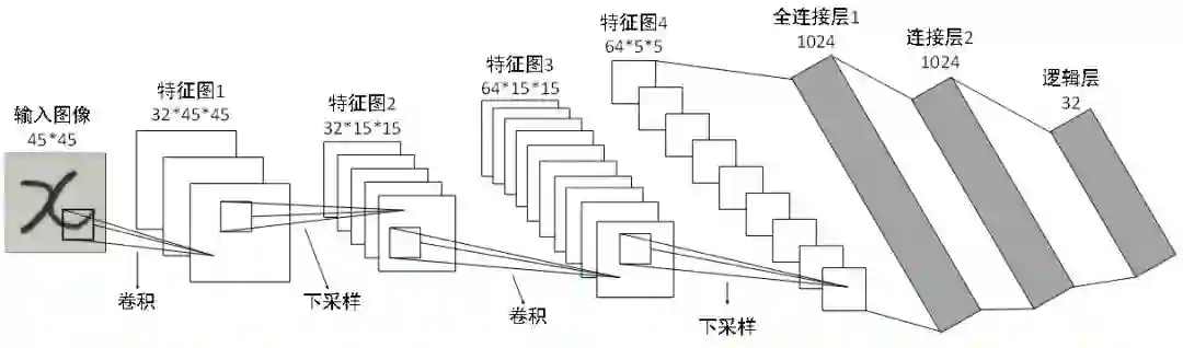 预处理之后,下一步就是对字符进行识别。选择的模型是卷积神经网络 LeNet5,因为不需要提取字符特征值,而且图像识别精确度高。