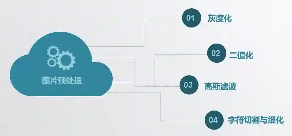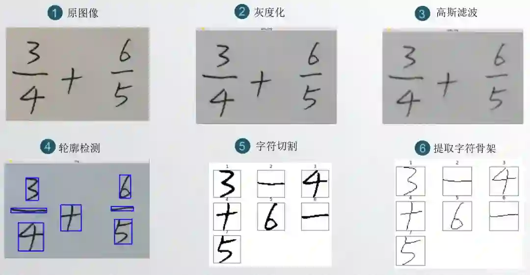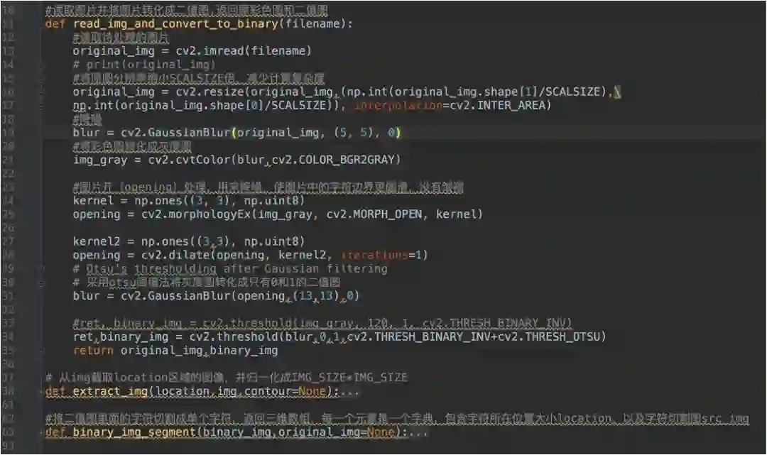 预处理主要包括:灰度化、二值化、高斯滤波、字符切割与细化。