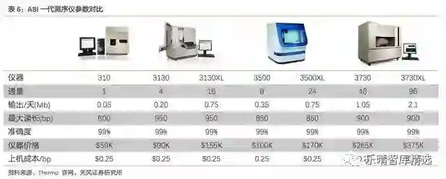 1987年,ABI公司在Sanger测序原理的基础上发布第一代真正商业化的自动测序仪。经过了多代产品的更新迭代,ABI公司于1996年推出310型全自动遗传分析仪,实现全部操作自动化,包括自动灌胶、自动进样、自动数据收集分析等。