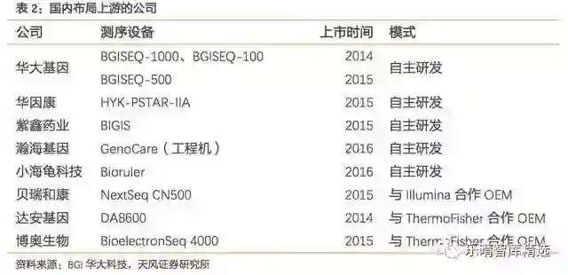 自主研发的仪器最早上市的是华大基因,作为国内测序服务巨头,早在2012年华大向美国测序仪公司CompleteGenomics发出现金收购要约,以每股3.15美元(不计利息)收购该公司所有股权。