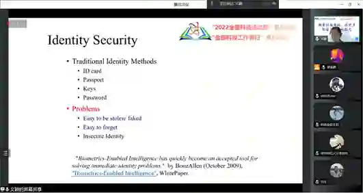 第二个讲座的报告人是来自华东师范大学的文颖教授。文老师的报告《浅谈生物特征识别》围绕生物特征识别技术的基本原理及其应用展开,主要从指纹识别、人脸识别、虹膜识别、姿态识别切入,惟妙惟肖地给观众们介绍了生物特征识别这项生活中非常常见的技术。