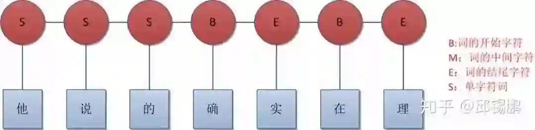 BMES 是 Begin/Middle/End/Single 的缩写,代表所标记的字符是一个词语的开始/中间/结尾/单字词。