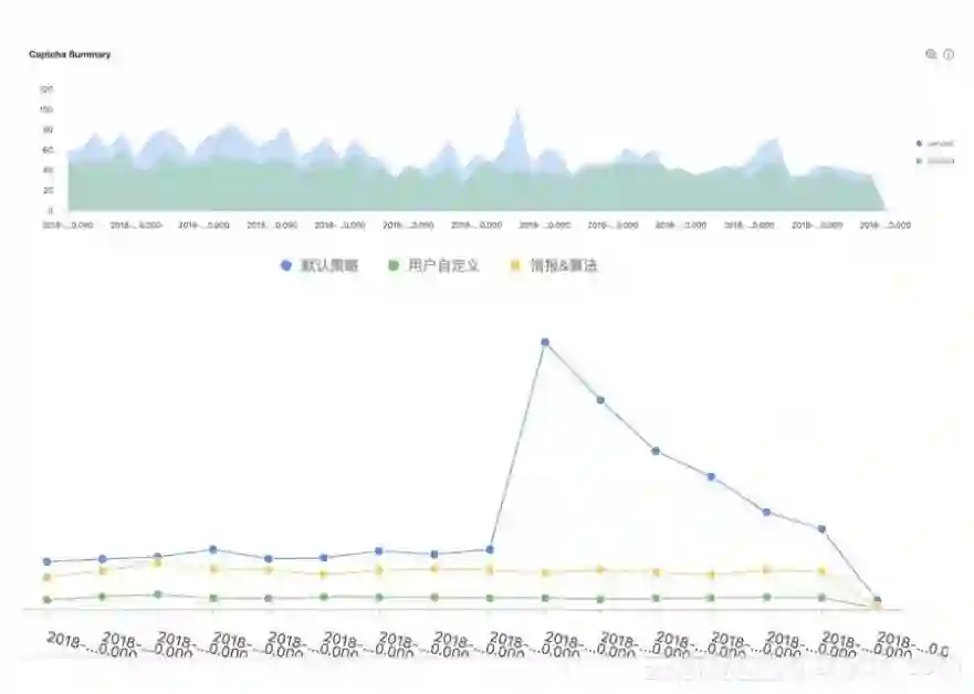 同时,结合阿里云的SLS日志服务,我们可以很方便的对当前流量做快速分析,或者设置个性化的业务指标监控和告警,如将最近半小时内某域名下某个IP的访问路径按次数排序、某种策略的命中及绕过情况、监控每分钟的注册量/下单量有没有突增的情况、滑块验证弹出及通过的情况等等,这样我们就完成了一个从检测到处置再到监控和对抗的闭环。