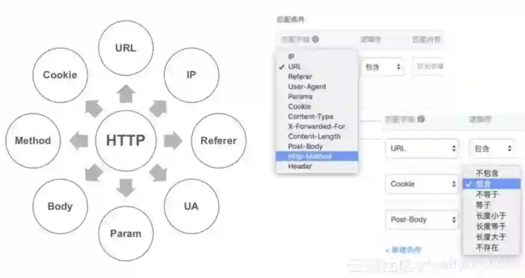 这些明显或不明显的“特征”,都可以作为第一道爬虫检测策略——特征封禁。这里的特征可以是各种HTTP头部、body以及它们的组合条件。阿里云爬虫风险管理产品提供了非常灵活的七层访问控制策略,如同一把应用层的瑞士军刀,是行走江湖的必备佳品: