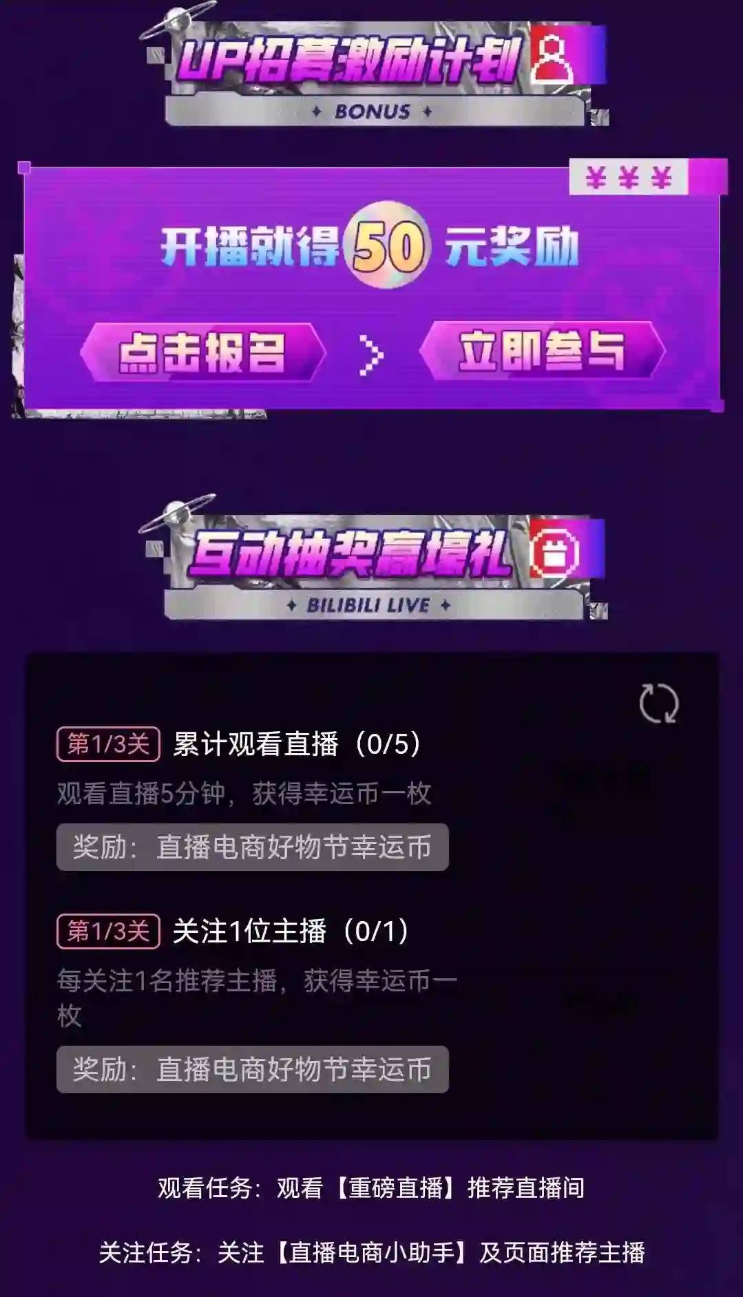 而今年10月,B站“直播电商小助手”又陆续发布了直播电商的相关规则和信息,又在直播栏目下增加了“购物”专区,还发布了UP招募激励计划,激励更多用户加入直播带货的行列。