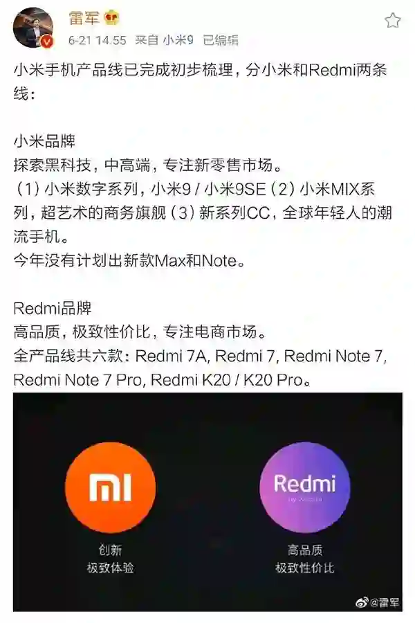 小米系列主打创新和技术,专注中高端和线下销售,只保留了小米数字系列和商务系列Mix,新添面向年轻人的CC系列。