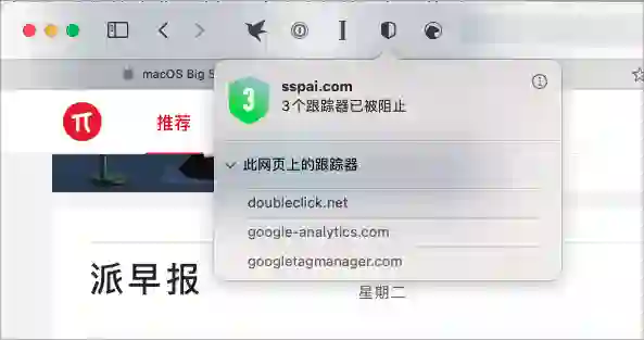 在起始页,Safari 也增加了「隐私权报告」模块,这里会以周为时间单位更新报告,让我们了解过去七天有多少网站尝试追踪我们的个人资料,以及 Safari 拦截了多少对于隐私的追踪请求。